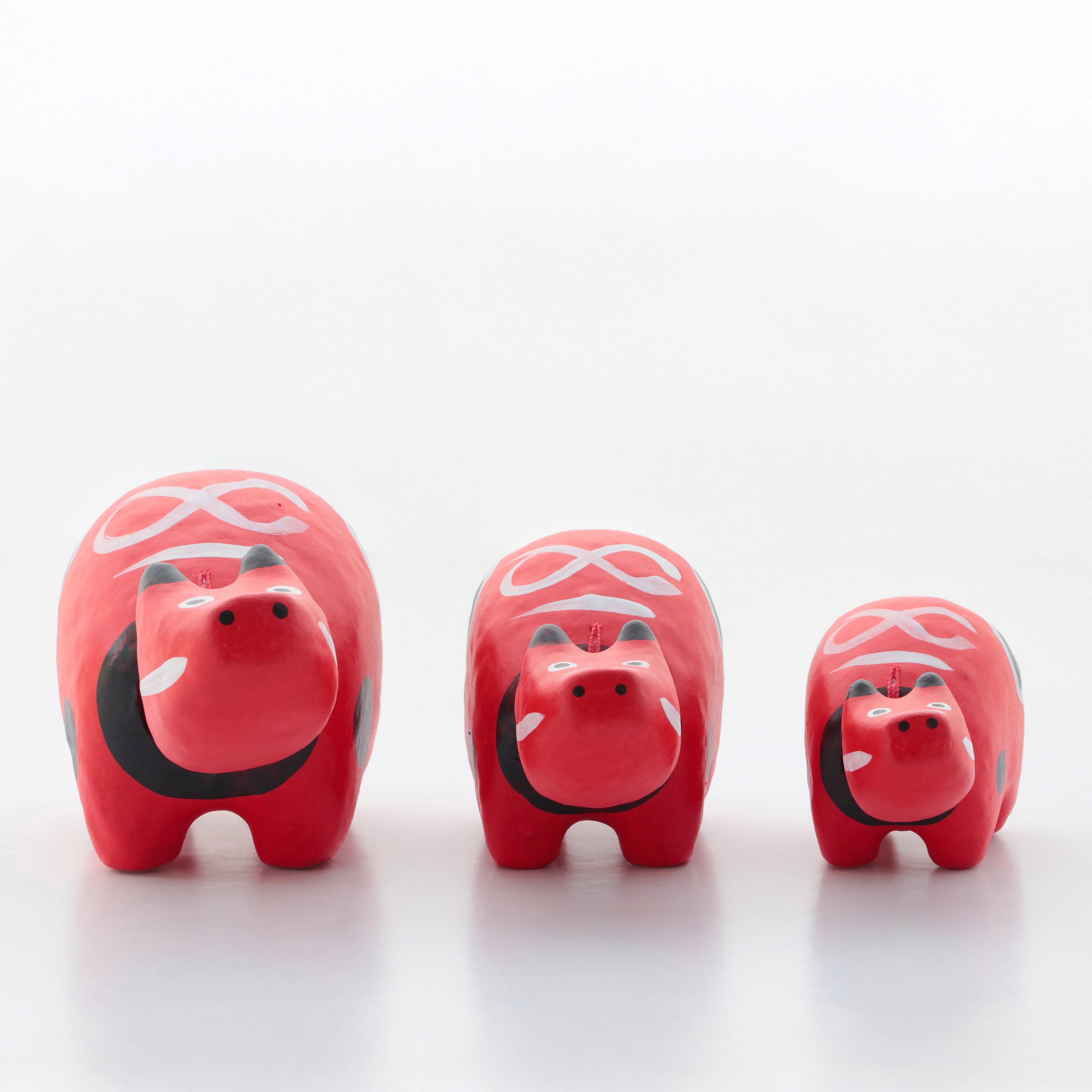 赤べこは縁起物として日本国内で様々な形でつくられる「アカモノ」の一つ。