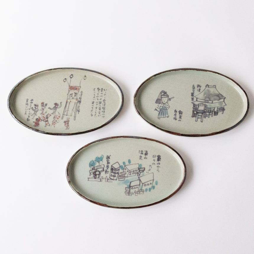 当窯元で人気の使いやすいラグビー皿に、会津の人情画家である